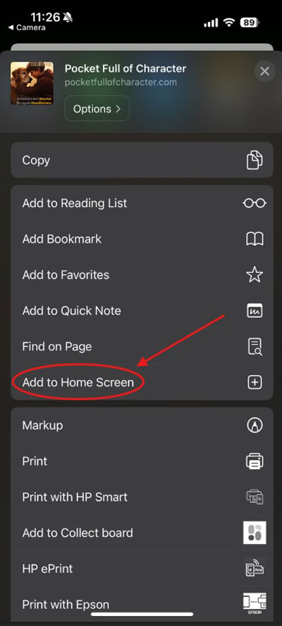 3. Tap the "Add to Home Screen."