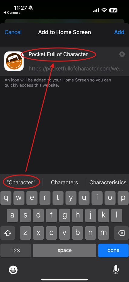 6. Tap new icon to open Pocket Full of Character web App.