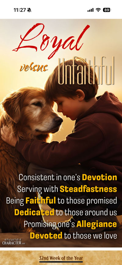 The purpose of building character is to protect our hearts from uncontrolled passions, emotions, and desires. The aim of Pocket Full of Character is to help you develop your character traits by providing daily reminders on your mobile devices (mobile phone and/or mobile tablet). If you choose to do so, you also use your desktop computers. This initiative encourages us to constantly instill these characteristics in our hearts on a constant basis. Hence, the motto: “From Your Pocket to Your Heart!”