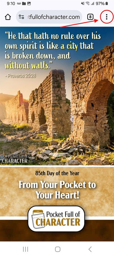 Just as Nehemiah and his followers rebuilt the walls of Jerusalem, we too must recognize that walls can be torn down and need to be rebuilt. If you complete the first round, continue using Pocket Full of Character daily or weekly as a way to not only build or rebuild but also maintain and preserve those walls. This will help keep our hearts, decisions, actions, and attitudes pure and upright.